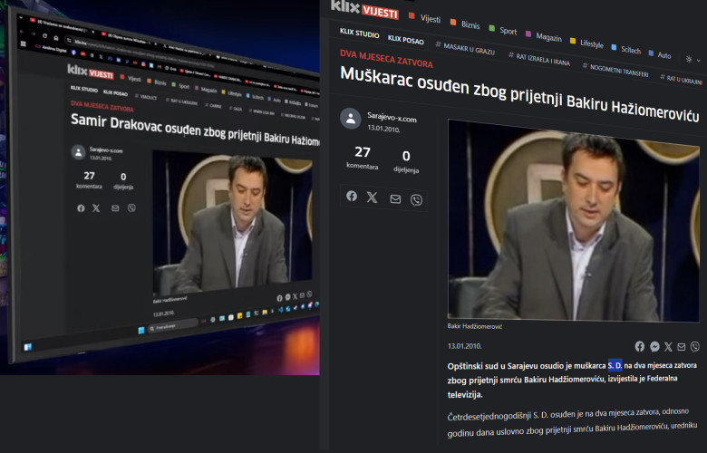 Portal Klix.ba sa svih mjesta uklonio ime i prezime Samira Drakovca iz članka o prijetnjama smrću
